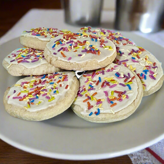 Frosted Party Cookies - Gluten-Free & Vegan Sugar Cookies with Frosting and Dye-Free Sprinkles