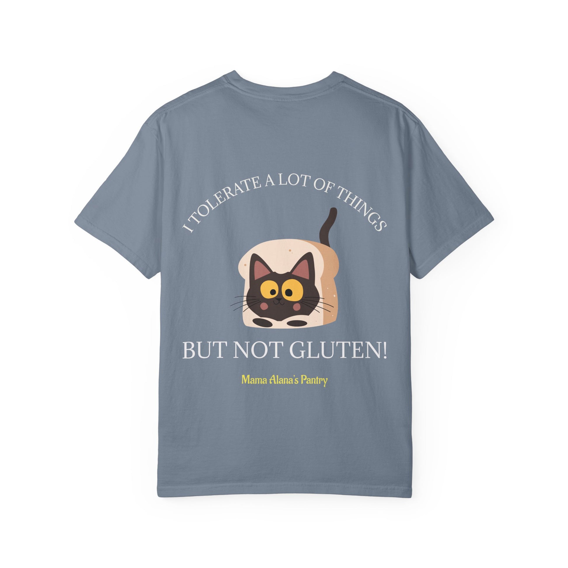 T-Shirt — "I Tolerate A Lot of Things but Not Gluten!" Cat in Bread Graphic